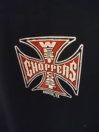 Camiseta negra con el logo de West Coast Choppers. De hombros 56 cms aprox De sisa a sisa 60 cms - Diseño West Coast Choppers. - Ubicación: Austin, TX.