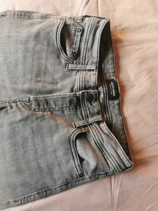 Tejano de la marca Jack & Jones en color gris. Un básico para tu armario. Talla 29 americana largo 34 - Diseño clásico. - Bolsillos delanteros. - Cierre de botón y cremallera.