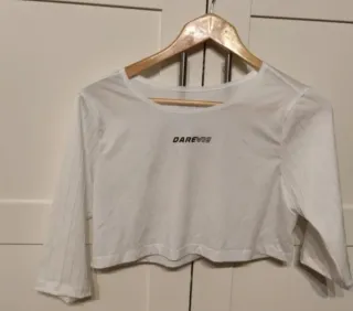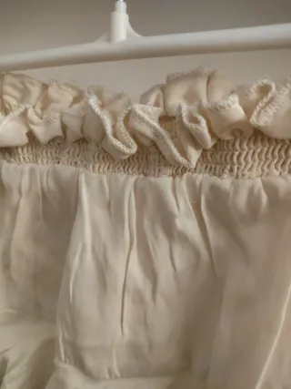 Top blanco de Zara con un diseño moderno y femenino. Ideal para cualquier ocasión. Pone talla M pero es más pequeña. Top cortito - Mangas cortas con volantes. - Tejido acanalado. - Cuello redondo.