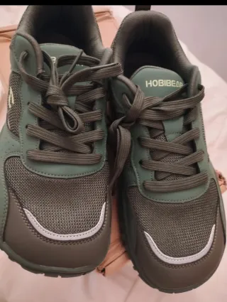 Zapatillas de montaña de la marca Hobibear en color verde, talla 44. Ideales para senderismo o actividades al aire libre. - Diseño moderno y funcional. - Materiales resistentes para mayor durabilidad. - Cierre con cordones para un ajuste seguro. - Suela con buen agarre.