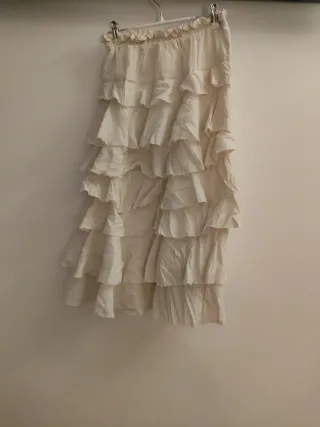 Falda larga con volantes en cascada y cintura elástica. - Diseño con múltiples capas de volantes. - Tejido ligero y vaporoso.