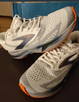 Zapatillas deportivas Brooks Adrenaline GTS 24. - Diseño moderno en blanco y naranja. - Parte superior de malla transpirable. - Suela con buen agarre.