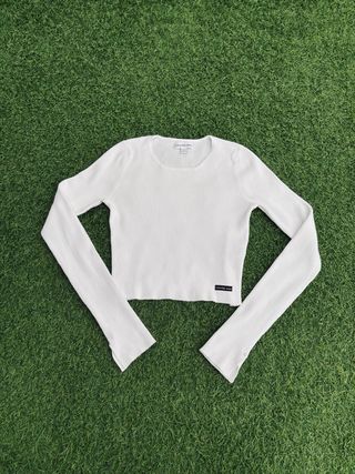 Camiseta de manga larga de Calvin Klein en color blanco. Diseño acanalado y corte crop. - Etiqueta de la marca en la parte frontal. - Puños con detalle de botón. talla 34