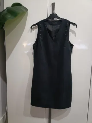 Vestido de Zara con un diseño moderno y detalles únicos. - Material tipo ante. - Aberturas con ojales metálicos en los laterales. - Escote en pico. -Clemallera lateral