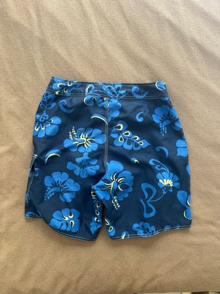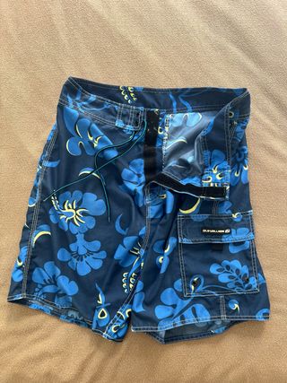 Bañador para hombre de la marca Quiksilver con un llamativo estampado floral. - Diseño divertido con flores azules y detalles amarillos. - Cintura con cordón ajustable. - Bolsillo lateral izquierdo con cierre de velcro, muy práctico. Si dudas de la talla, contacta conmigo para vernos y probártelo sin ningún compromiso. Puedes ver otros bañadores similares en mi perfil.