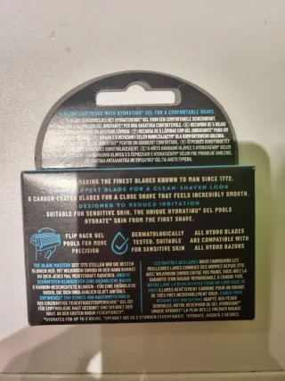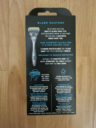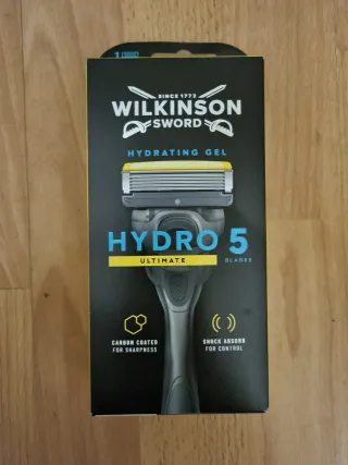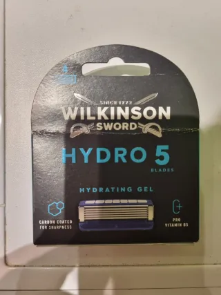 Nueva sin estrenar Maquinilla de afeitar Wilkinson Sword Hydro 5 con gel hidratante. - Gel hidratante. - Cuchillas Hydro 5. - Recubrimiento de carbono para mayor afilado. - Absorción de impactos para un mejor control.