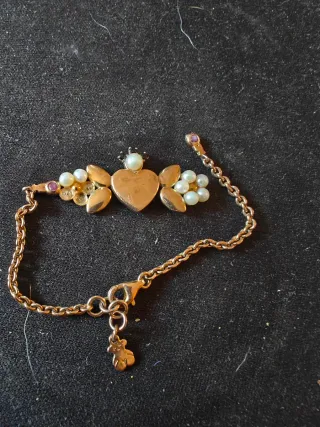 Elegante pulsera de la marca Tous con un diseño delicado. - Charm principal en forma de corazón. - Charm secundario con el icónico osito de Tous. - Cadena fina y ajustable. - Pequeño detalle de piedra morada.