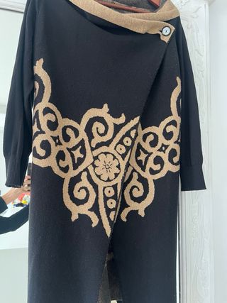 Chaqueta larga fiesta negra y dorada cuello barco
