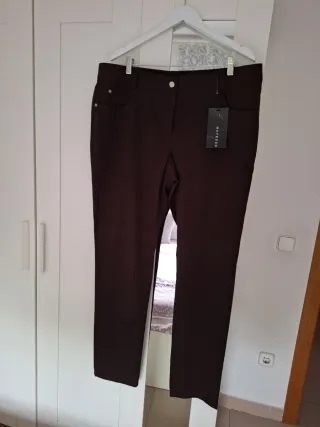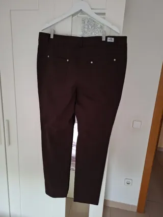 Confeccionados en algodón y elastán, t/ 52, tipo vaquero, color marrón chocolate. - Corte recto. - Cierre de botón y cremallera. - Dos bolsillos delanteros y dos traseros. Hechos en España Prenda de calidad ( PVP. 86,50 ).