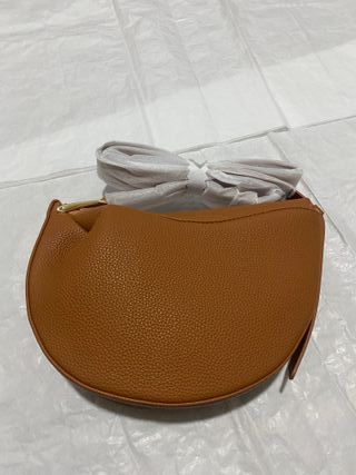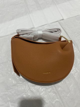 Bolso de cuero con forma de media luna. Se vende sin caja. Condiciones de venta por privado. - Diseño elegante y moderno. - Acabado texturizado. - Asa dorada. - Correa ajustable. #zara #mango #polene