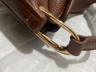 Bolso media luna cuero marrón.