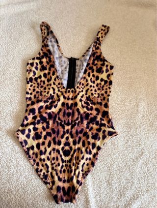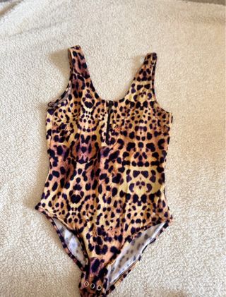 Bañador con un llamativo estampado de tigre en los laterales. - Diseño con cordón ajustable en la cintura. - Detalle de ribete oscuro en los bajos. - Talla 32 (M/L) cómo se puede ver en la foto  Si dudas de la talla, contacta conmigo para vernos y probártelo sin ningún compromiso. Puedes ver otros bañadores similares en mi perfil.