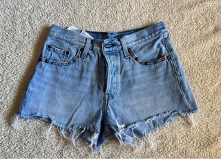 Pantalones vaqueros clásicos de Levi's, modelo 501, en un tono azul claro. - Corte recto. - Cierre de botones. - Bajo deshilachado.