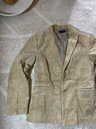 Americana de pana en color beige, con un estilo retro y vintage. - Cierre de un botón. - Dos bolsillos frontales. - Cuello solapa.