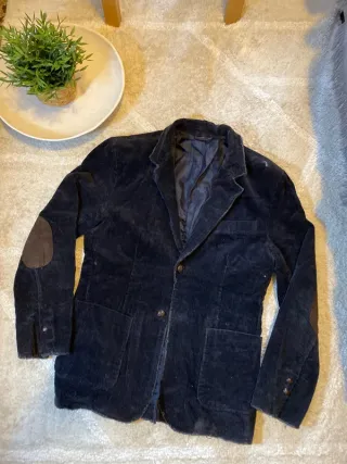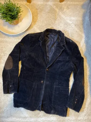 Blazer estilo americana en pana, con un toque retro. - Cierre de tres botones. - Bolsillos frontales con solapa. - Puños con botones.