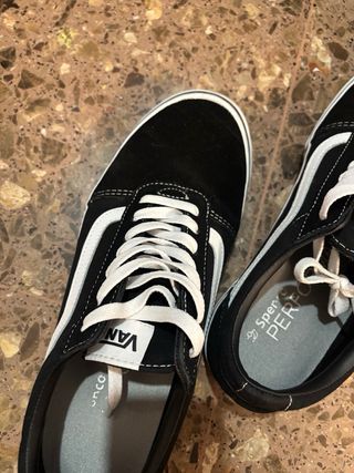Zapatillas Vans clásicas en color negro y blanco. - Talla 43 EUR. - Diseño icónico de la marca. - Suela de goma.
