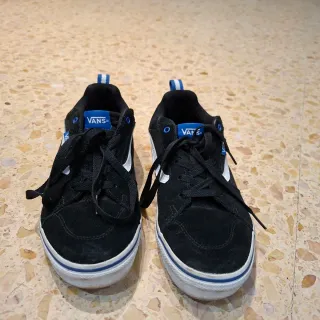 Zapatillas deportivas Vans en color negro con detalles en azul. - Cierre con cordones. - Suela de goma. - Logo de la marca en la lengüeta y lateral.