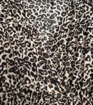 Vestido con estampado de leopardo, ideal para cualquier ocasión. - Diseño cruzado. - Cintura elástica. - Mangas largas.