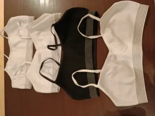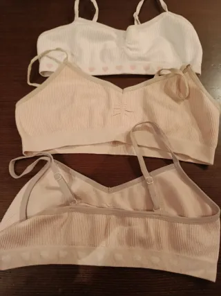 Pack de tres sujetadores deportivos para niña. Son cómodos y elásticos. - Diseño de tirantes. - Banda elástica en la parte inferior. - Tejido acanalado.