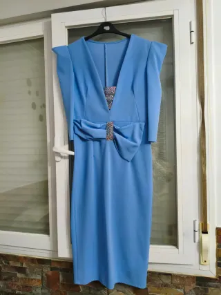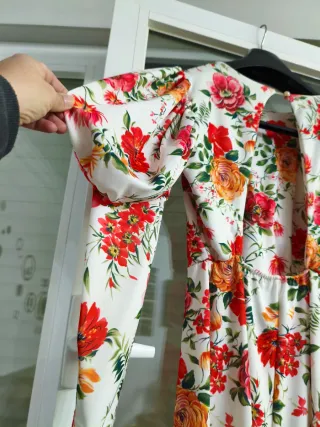 Vestido de fiesta, talla XS de Shein. Nuevo, sin estrenar. Con escote cruzado, mangas largas abullonadas y tejidos drapeado. Muy cómodo. Cremallera en la espalda.