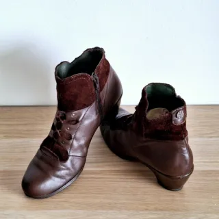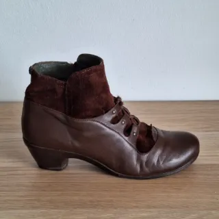 Botines de estilo zapato con cordones, en piel auténtica, con cremallera y tacón de 5,5 cm. N° 40 (calza bien de n°) - Exterior Piel y Ante 100% - Interior Piel 100% - Plantilla Piel 100% Ideal para vestir o como complemento para disfraz.. - No negociable. Más artículos en mi perfil 🫠