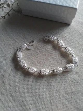 Elegante pulsera de plata de ley 925, completamente nueva. - Diseño con eslabones ovalados. - Detalles brillantes en cada eslabón. - Cierre de seguridad.
