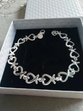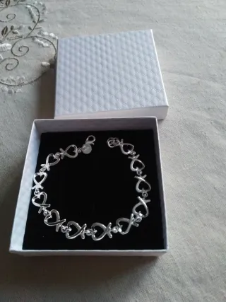 Elegante pulsera con diseño de corazones entrelazados. - Fabricada en plata de ley 925. - Cierre de seguridad.