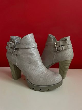 Botines plateados con hebillas