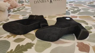 Botas de serraje de Zara. Son preciosas, están como nuevas - Diseño de caña media. - Tacón de madera. - Punta fina.