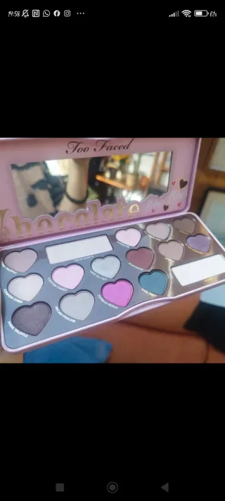 Paleta de sombras de ojos Too Faced Chocolate. - Diseño en forma de corazón. - Tonos marrones y rosados.