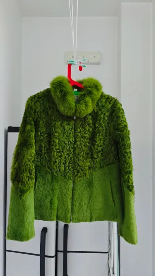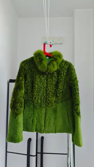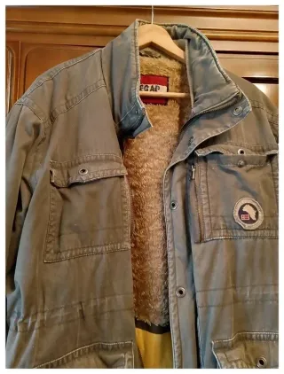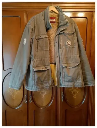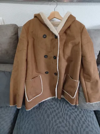 Cazadora de borrego con capucha, ideal para el frío. - Detalle de borrego en cuello y puños. - Cierre de cremallera. - Forro interior. - Queda holgado, también le valdría a una talla L, no queda nada apretado en la cadera.