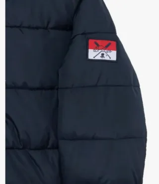 Cazadora de invierno con forro interior suave y capucha. - Cierre de botones de madera. - Bolsillos delanteros. - Detalle de escudo en el pecho.