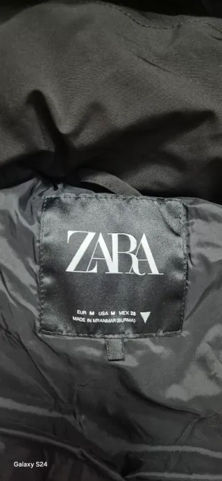 Cazadora de la marca Zara para hombre en color negro. Diseño moderno y versátil. - Cierre de cremallera. - Múltiples bolsillos frontales con botón. - Cuello alto con cierre de botón.