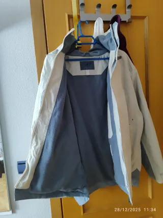 Cazadora de invierno con un diseño moderno y funcional. - Exterior en tonos beige y gris. - Interior forrado para mayor calidez. - Cierre de cremallera frontal.