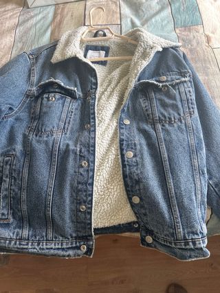 Nueva, a estrenar. Cazadora vaquera con forro interior de borreguito marrón. Cómoda, gruesa y calentita. Bolsillos en el frente y pecho. Cierre de botones metálicos. Puños abotonados. Marca: Pull & Bear Talla: M