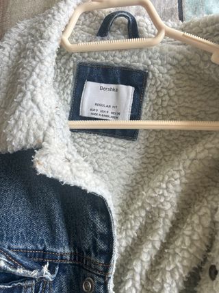 Cazadora vaquera de Bershka con forro interior de borreguito. - Diseño clásico de denim. - Cierre de botones metálicos. - Bolsillos en el pecho.