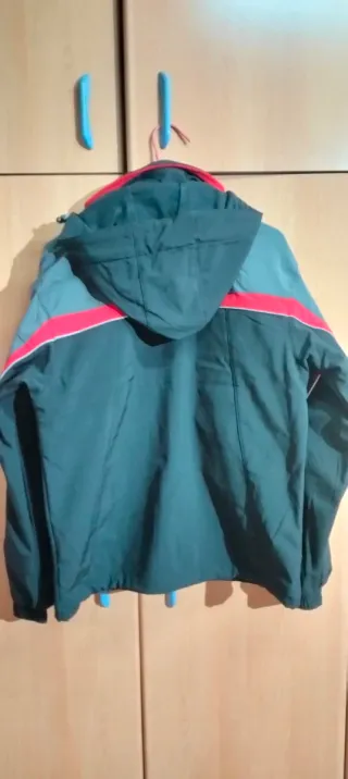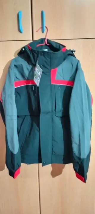 Cazadora de invierno con diseño moderno y funcional. - Material impermeable para protegerte de la lluvia. - Combinación de colores gris y rojo. - Capucha integrada para mayor protección. -Unisex, talla S de chico sería como una M para chica