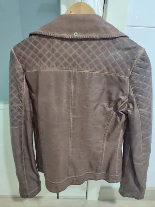 Cazadora de imitación cuero con un diseño moderno. - Cierre de cremallera. - Bolsillos laterales con cremallera. - Solapas de muesca. - Botones a presión en las solapas.