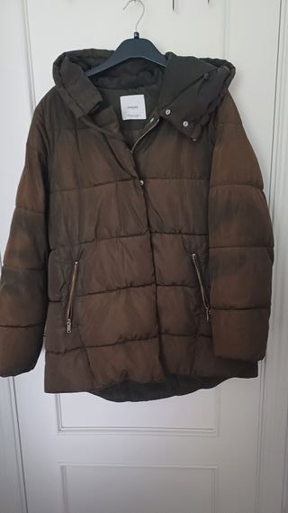 Cazadora acolchada, muy calentita, con capucha de Mango, talla M. Mide 80 de largo, 50 de sisa, 46 de hombro, cintura 60. - Cierre de cremallera. - Bolsillos laterales con cremallera. - Puños elásticos. - Capucha.
