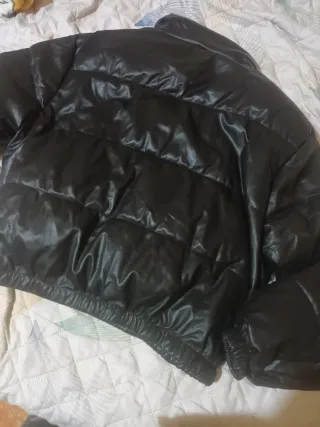 Vendo cazadora tipo plumífero en negro brillante, talla XL. ✅ Capucha amplia ✅ Acolchado grueso ✅ Puños y cintura elásticos ✅ Bolsillos con cremallera + bolsillo interior