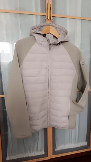 Cazadora de la marca Álvaro Moreno. - Diseño acolchado en el cuerpo. - Mangas y paneles laterales en neopreno - Capucha integrada. - Cierre de cremallera frontal. - Detalle de logo circular en manga izquierda. Impecable
