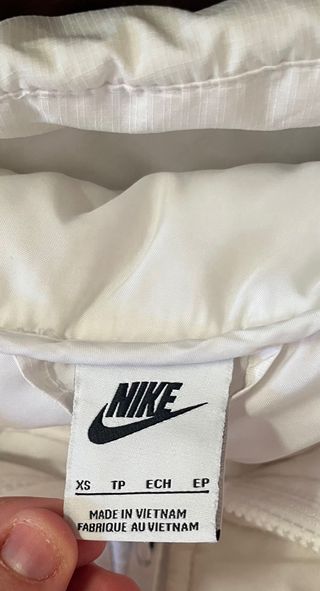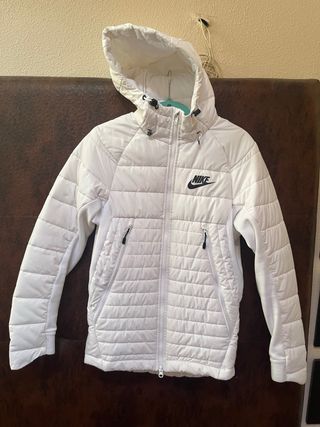 Cazadora acolchada de la marca Nike, en color blanco y con capucha. -Muy poco uso. - Diseño acolchado. - Cierre de cremallera. - Bolsillos con cremallera.