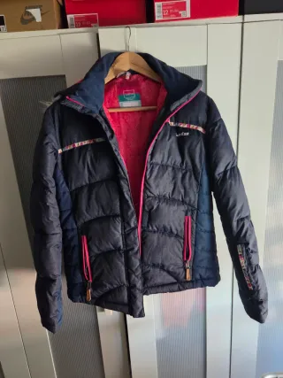 Cazadora de nieve con un diseño acolchado y capucha. - Cierre de cremallera frontal. - Bolsillos laterales con cremallera. - Forro interior de color rosa.