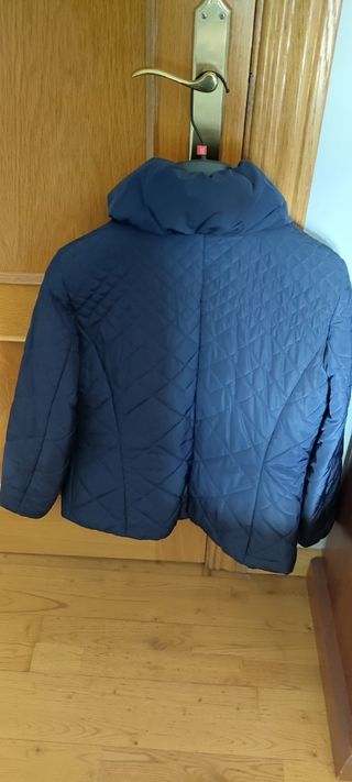 Preciosa cazadora acolchada de color azul marino pero no es muy oscuro ,es mas como “electrico-brillante”,es un color muy agradable.Es ligera y cómoda. - Diseño acolchado. - Cremallera frontal. - Perfecta para entretiempo. Esta forrada por dentro lo que la hace muy calida,la talla corresponde a una 44/46 ,es muy facil el lavado,la vendo por que para mi es muy corta,no tirne puños,con bolsillos escondidos,tiene capucha tengo mas en mi perfil