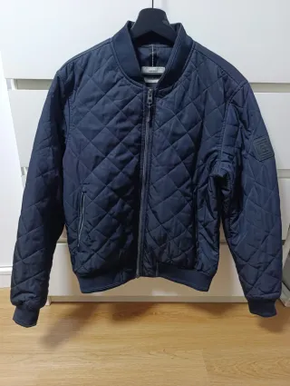 Cazadora Bomber "ZARA MAN" acolchada con capucha y doble cremallera talla M. Perfecto estado como nuevo.