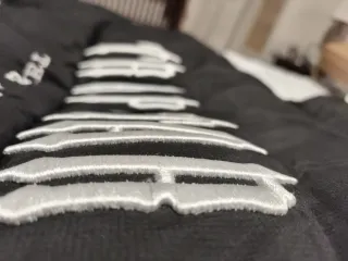 Cazadora acolchada con capucha. - Cierre de cremallera.( un enganche de la cremallera de un bolsillo esta roto) - Bolsillos laterales con cremallera. - Detalle de parches en la manga y el pecho. - Puños ajustables.