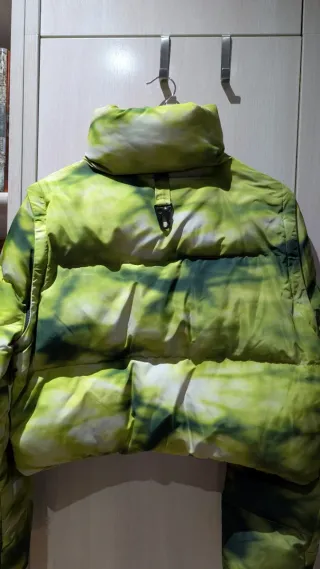 Chaqueta acolchada con un llamativo diseño tie-dye. - Estampado tie-dye en tonos verdes y blancos. - Cuello alto. - Cierre de cremallera. - Se trasforma en chaleco Sin etiqueta puesto una vez