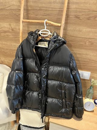 Cazadora negra de Zara con un diseño moderno y funcional. - Parte frontal acolchada. - Capucha integrada. - Cierre de cremallera. - Bolsillos laterales.