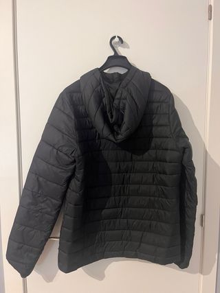Cazadora negra de estilo acolchado. - Diseño moderno y cálido. - Cierre de cremallera frontal. - Capucha integrada.