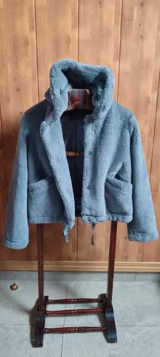 Vendo cazadora tipo bomber, usada pocas veces en perfecto estado, marca naf naf , pelo sintético gris con capucha y 2 bolsillos delanteros , forro interior gris , talla 38 equivale a una M, ideal look informal , composición poliéster , ver foto etiqueta